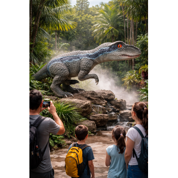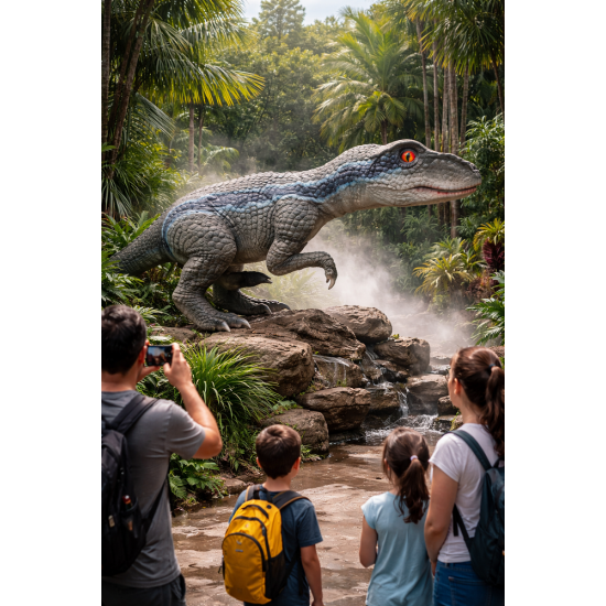 Интерактивная кукла динозавра Велосираптор разработана для профессионального использования в сфере развлечений и образования. Детализированная текстура кожи и натуральная окраска создают эффект настоящего доисторического хищника. Ручной механизм обеспечивает плавное движение пасти, а мигающие глаза усиливают эффект присутствия.