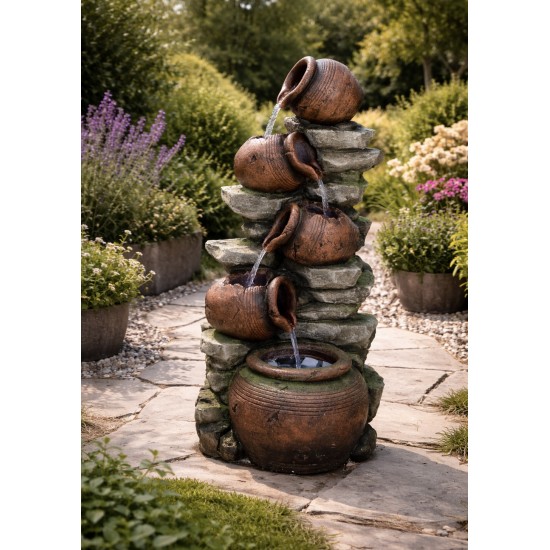 Фонтан Madeira Pouring Pots привлекает внимание своим натуральным дизайном и реалистичным эффектом перелива воды. Конструкция вдохновлена классическими садовыми горшками, благодаря чему гармонично сочетается с растениями и элементами ландшафта. Использование качественной смолы обеспечивает устойчивость к дождю и ультрафиолету.