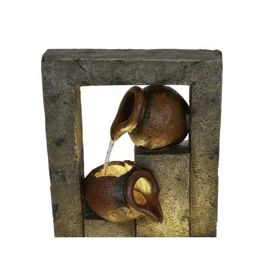 Vilamoura Pouring Pots — это элегантный садовый фонтан с каскадным эффектом воды, создающий расслабляющую и гармоничную атмосферу на открытом пространстве. Изготовлен из прочной смолы, устойчивой к различным погодным условиям, что обеспечивает долгий срок службы. Встроенная LED-подсветка усиливает визуальный эффект в вечернее время. Размеры изделия составляют L 39 x W 32 x H 81 cm, вес — 13 кг, что обеспечивает устойчивость и удобство установки. Подходит для наружного использования и работает от сети.