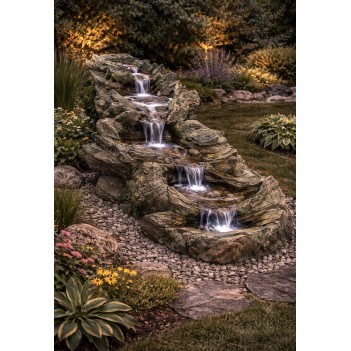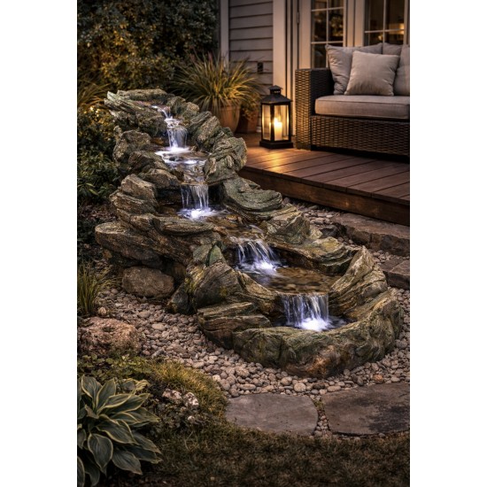 Фонтан Rio Grande River Falls — это идеальное решение для создания эффектной водной композиции в саду или коммерческом пространстве. Его дизайн вдохновлён природными речными пейзажами, благодаря чему поток воды выглядит максимально естественно. Многоуровневая конструкция создаёт эффект каскада, а звук воды способствует расслаблению и созданию уютной атмосферы.