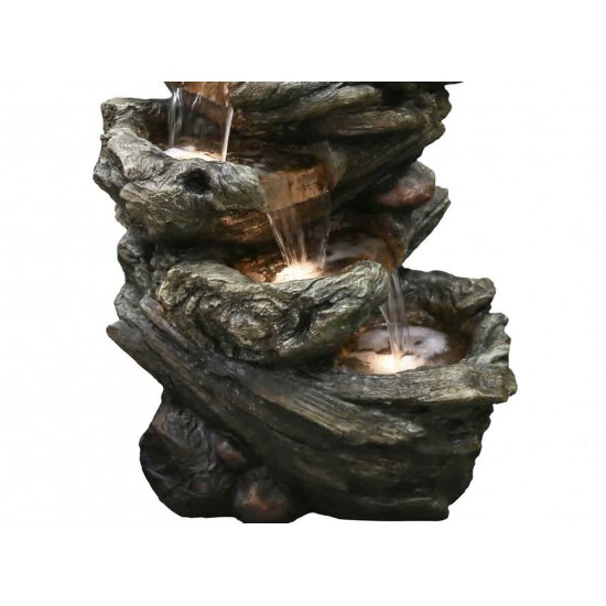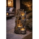 Конструкция выполнена из качественной смолы, устойчивой к внешним воздействиям. Питание от сети обеспечивает стабильную работу. LED-подсветка делает фонтан эффектным элементом в вечернее время.