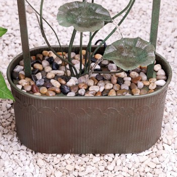Фонтан Enchanted Arch (120 × 50 × 25 см) изготовлен из прочного цинка в бронзовом оттенке. Декоративная арка с листьями и многоуровневыми лепестками создаёт сказочный образ. Встроенный резервуар и насос 650 л/ч обеспечивают автономную работу от сети. Подходит для установки в саду или на террасе.