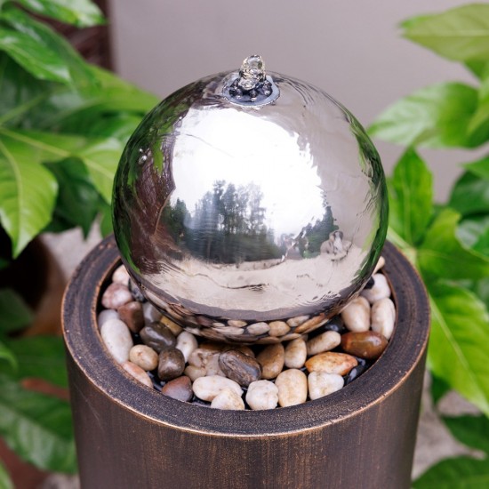 Фонтан Wildflower (86 × 28 × 28 см, вес 5,9 кг) выполнен в форме сферы с лазерным узором полевых цветов. Элегантная колонна и шар создают современный силуэт, а встроенная LED-подсветка подчёркивает поток воды вечером. Автономная система упрощает установку в саду или на террасе.