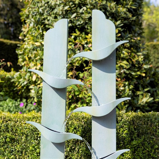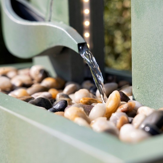 Elvas Zinc 6 Tier Cascading Water Feature With LED Lights имеет размеры 123 см высота, 50 см ширина, 25 см глубина. Материал – zinc, цвет зелёный. Питание от сети, насос 8 W, производительность 650 LPH, кабель 1000 см (10 м). Подсветка LED Warm White создаёт эффектное вечернее освещение. Предназначен для наружного использования. Вес 12,3 кг.