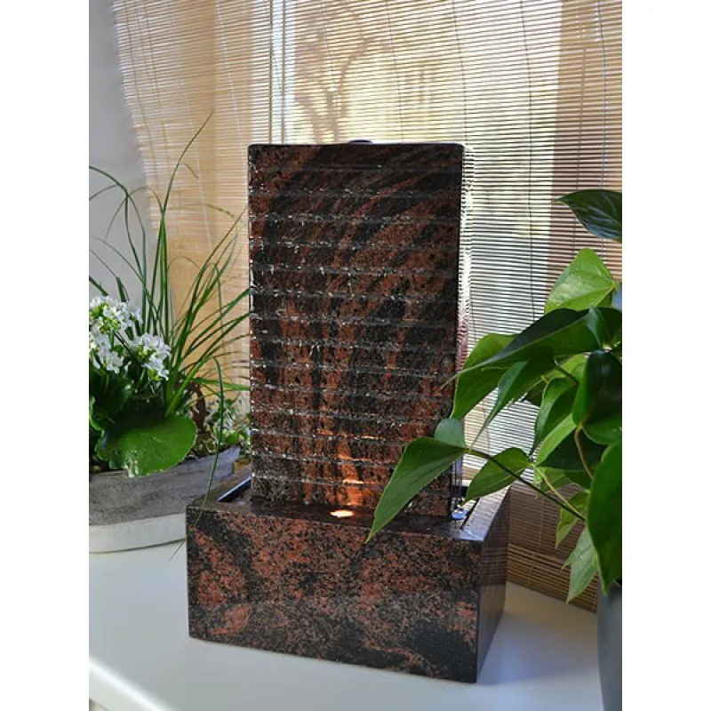 Стена из натурального камня Aurora вызывает эмоции и излучает радость жизни. Изготовлен вручную в Австрии из индийского гранита Aurora. Характерен гармоничный по цвету гранитный элемент резервуара и каменной чаши. Также практичными являются компактные размеры камер из натурального камня, которые обеспечивают простоту установки. Вода проходит через весь исходный элемент. В результате этот колодец также можно эффективно использовать в качестве увлажнителя. Подсветку можно включить или выключить в любой момент. Подходящая каменная ванна выбирается свободно: либо из гранита Aurora, либо из гранита Nero Assoluto.