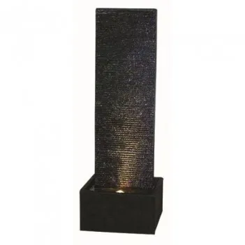 Вода течет из передней части этого удивительного фонтана в стиле черного волнистого гранита. Подсвеченный прожектором, этот фонтан прекрасно смотрится как ночью, так и днем.
