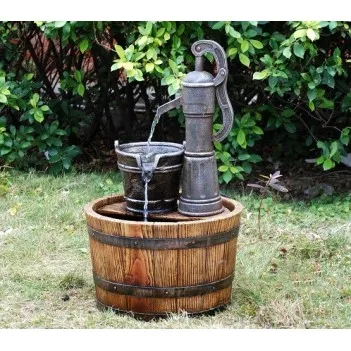 Фонтан, представляющий собой старый насос, наливающий воду в ведро, а затем в бочку. Высококачественная полирезина делает этот чрезвычайно детализированный фонтан достаточно прочным, чтобы его можно было оставить снаружи.