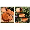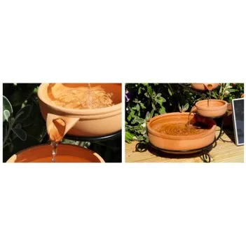 Садовый фонтан с терракотовыми чашами, работающий на солнечной энергии.