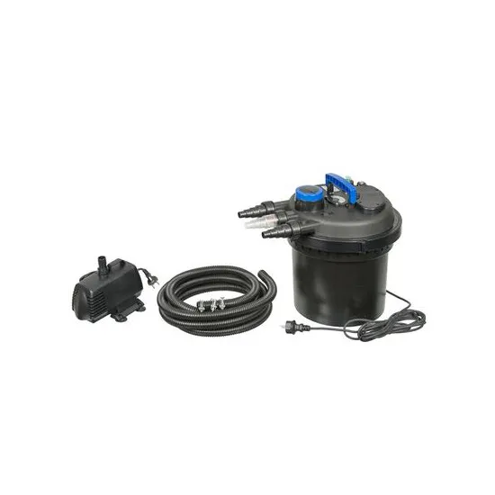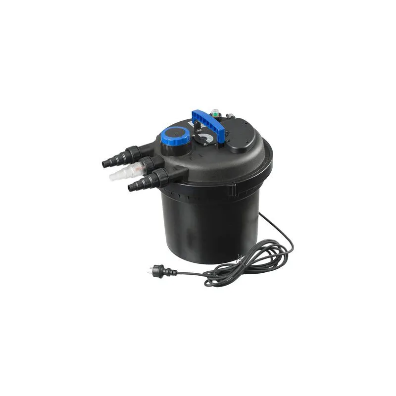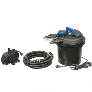 Фильтры BioPressure доступны в четырех различных номиналах мощности, как в виде базовых комплектов, содержащих только фильтр, так и в виде дополнительных комплектов с прикрепленным насосом. Фильтр BioPressure можно использовать в прудах объемом до 6000 литров (без рыбы) или 3000 литров (с рыбой). Как следует из названия, вода проходит через BioPressure под давлением. Это означает, что можно перекачивать воду на более высокий уровень, например, в водопад или ручей, но также и то, что фильтр не переполнится и не сломается, если он установлен на более низком уровне или даже ниже уровня воды.