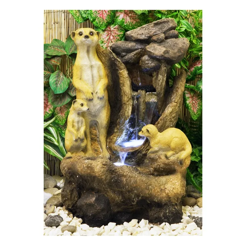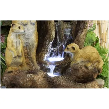 Этот прекрасный фонтан красиво изготовлен из органической смолы. Это чудесное место, у ручья, где «живет» семья из трех сурикатов. Этот фонтан, несомненно, станет центром внимания в любой обстановке.