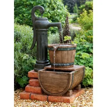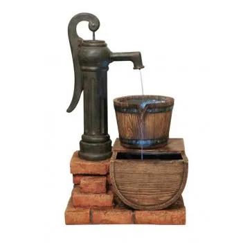 Традиционный фонтан станет прекрасным украшением дома или сада. Он изготовлен из высококачественной органической смолы и выглядит так, будто сделан из дерева, металла и камня. Светодиоды спрятаны в обоих ведрах, что делает фонтан прекрасным даже ночью.