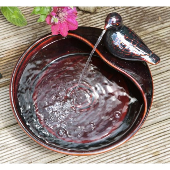 Фонтан 35cm Dove Solar Ceramic Water Feature имеет размеры высота 20 см, ширина 35 см, глубина 35 см. Материал – керамика, цвет коричневый. Питание solar, насос 6 W, производительность 100 LPH, длина кабеля 300 см. Резервуар и насос входят в комплект. Предназначен для наружного использования.
