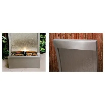 Этот удивительный изогнутый каскадный водный элемент изготовлен из высококачественной нержавеющей стали.Он имеет высоту 1,5 метра и полностью автономен.