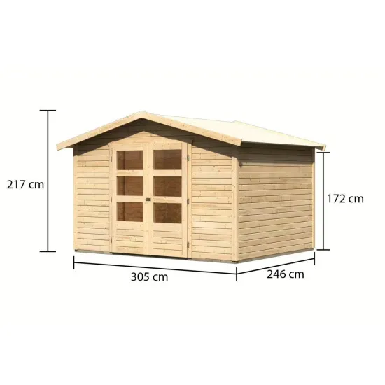 Внутренние размеры 301,5 х 241,5 см открывают широкие возможности для компоновки. Он может стать уютным местом для отдыха, идеальным для минут отдыха в окружении природы. Классический дизайн дома идеально сочетается с различными садовыми стилями, создавая целостное и эстетичное целое.