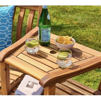 Redcliffe Acacia Wood Companion Set — классический комплект для отдыха на улице из прочного акациевого дерева (acacia hardwood). Комплект включает 1 набор с двумя связанными креслами и центральным столиком. Размеры: ширина 1790 мм × глубина 860 мм × высота 880 мм; Вес: 29 кг; Гарантия: 3 года.