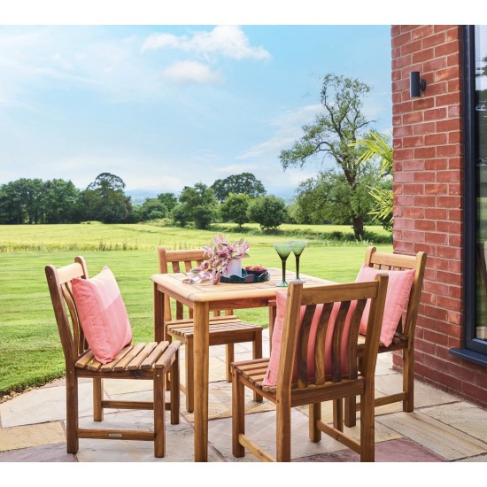 Redcliffe Acacia Wood Square Dining Table — это квадратный садовый обеденный стол из массива акации с гладкой масляной отделкой. What’s included: 1 × стол. Размеры: ширина 800 мм × глубина 800 мм × высота 760 мм; вес 17 кг. Подходит для размещения до четырёх человек. Гарантия: 3 года.