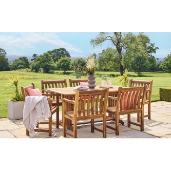 Обеденный стол Redcliffe Acacia Wood Rectangular Dining Table сочетает классический стиль и долговечность. Изготовлен из массива акации с тёплым золотисто-коричневым оттенком и выразительной текстурой, которую подчёркивает ручная шлифовка и масляное покрытие. Такая обработка улучшает стойкость дерева к атмосферным воздействиям. Размеры стола — 1650 × 1000 × 740 мм, что позволяет удобно разместить за ним семейные обеды и встречи с друзьями. Вес около 32 кг обеспечивает устойчивость, а классический дизайн легко сочетается с разными стилями садовой мебели. В комплект входит 1 стол Redcliffe, который можно дополнить стульями из коллекции для создания единого комплекта. 3-летняя гарантия подтверждает надёжность и качество изделия.