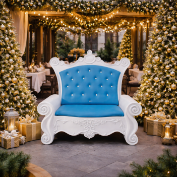 Santa Sofa (Blue/White) входит в ассортимент декоративных тронов и сидений для рождественских инсталляций. Изделия изготавливаются из прочной стеклопластиковой смолы и других долговечных материалов, предназначенных для профессиональных праздничных декораций.