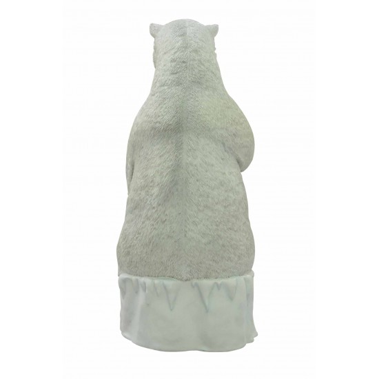 Сидящий белый медведь является частью коллекции декоративных фигур полярных медведей, изготовленных из устойчивой к погодным условиям стекловолоконной смолы и прочных материалов, предназначенных для профессиональных сезонных декораций.