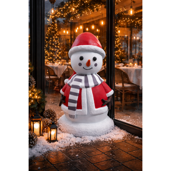 Фигура выполнена из прочной стеклопластиковой смолы, устойчивой к внешним воздействиям. Подходит для использования как внутри помещений, так и на улице. Идеальна для оформления входов, садов, террас и коммерческих пространств. Отлично сочетается с другими элементами коллекции снеговиков.