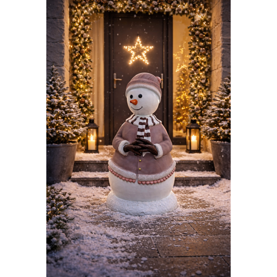 Mini Mama Snow – рождественская фигура снеговикаMini Mama Snow — это компактная декоративная фигура в натуральную величину, создающая уютную праздничную атмосферу. Изготовлена из прочной стекловолоконной смолы, устойчива к погодным условиям. Размеры: L 44 x W 48 x H 90 см.