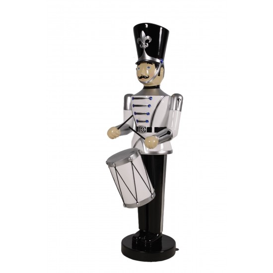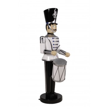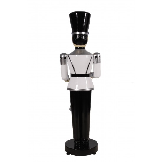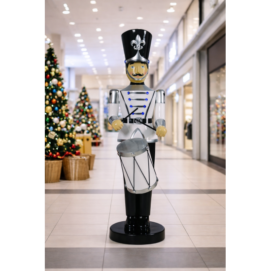 Toy Soldier with Drum (White/Black) входит в коллекцию декоративных щелкунчиков и солдатиков. Эти модели изготавливаются из устойчивой к погодным условиям стекловолоконной смолы и прочного металла, что делает их подходящими для профессиональных праздничных инсталляций.