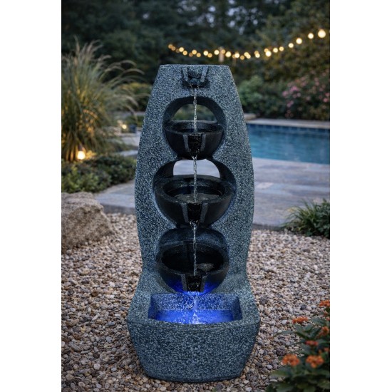 Solar Glenwherry Bowls — это декоративный садовый фонтан на солнечной энергии, создающий расслабляющий звук текущей воды и атмосферу восточного сада. Каскадные чаши обеспечивают плавный поток воды, благодаря чему фонтан идеально подходит для сада, террасы или патио. Устройство работает от солнечной энергии и не требует подключения к электрической сети. Прочный материал из смолы устойчив к погодным условиям.