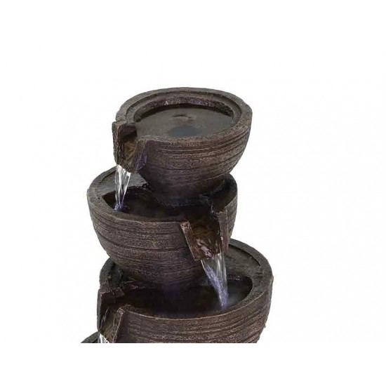 Solar Brown Bowls — это стильный садовый фонтан с каскадом чаш, который создаёт расслабляющую атмосферу в саду, на террасе или во внутреннем дворике. Фонтан работает на солнечной энергии и не требует подключения к электрической сети, что делает установку простой и экологичной. Встроенная LED-подсветка красиво подчёркивает поток воды в вечернее время. Конструкция изготовлена из прочной смолы, устойчивой к погодным условиям. Размеры фонтана составляют L 36 × W 30 × H 58 cm, а вес — 8 kg, что обеспечивает устойчивость и удобство размещения на улице.