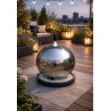 Материал — прочная смола — отличается высокой устойчивостью к влаге и погодным условиям. LED подсветка мягко освещает поток воды в вечернее время, создавая декоративный и атмосферный эффект.