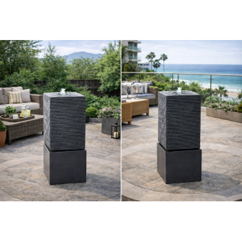 Квадратная колонна высотой 84,5 см образует динамичный каскад, где вода собирается сверху и мягко стекает по рельефным сторонам.