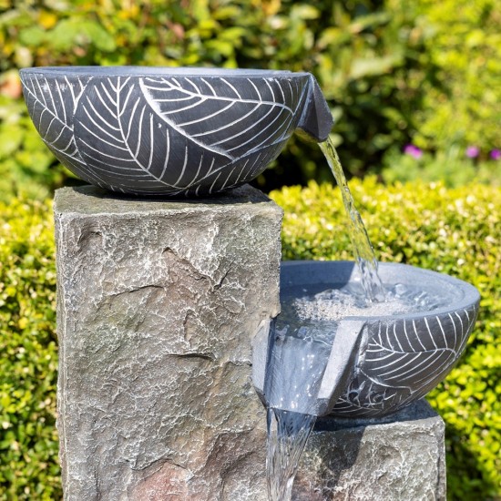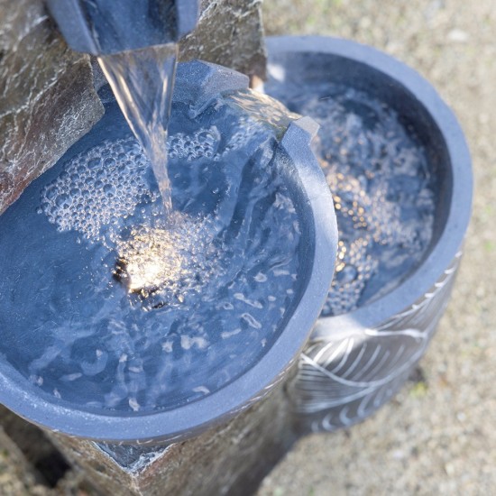 Садный фонтан Guarda 3-Tier с LED подсветкой привносит атмосферу спокойствия в ваш сад, террасу или двор. Три каскадные чаши с листовым узором создают расслабляющий водопадный эффект. Изготовлен из прочного полиэстера, устойчивого к УФ-лучам и морозу, что делает его идеальным для уличного использования. Самодостаточная конструкция облегчает монтаж и обслуживание.