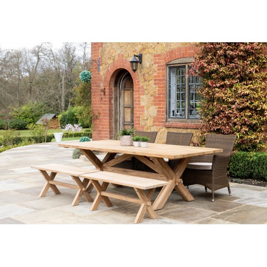 Стол Teak Plank Table 3.0m из коллекции Signature Plank сочетает в себе прочность, долговечность и элегантный дизайн. Он изготовлен из тщательно отобранных тековых досок, известных своей устойчивостью к атмосферным воздействиям и длительным сроком службы без необходимости частого ухода. Пять досок, использованных для столешницы, подобраны по цвету и текстуре, что придаёт поверхности гармоничный вид. Конструкция со стильной крестовой опорой обеспечивает устойчивость и прочность, а современный дизайн позволяет гармонично интегрировать стол в разные экстерьерные стили — от классических садов до современных террас. Teak Plank Table 3.0m прекрасно сочетается с лавками или креслами из коллекций San Marino, Monte Carlo и Cordial, создавая целостную обеденную композицию на открытом воздухе. Этот стол — идеальный выбор для семейных ужинов, дружеских обедов на свежем воздухе и праздничных встреч. Поддерживается 10-летней гарантией, что подтверждает качество и долговечность изделия.