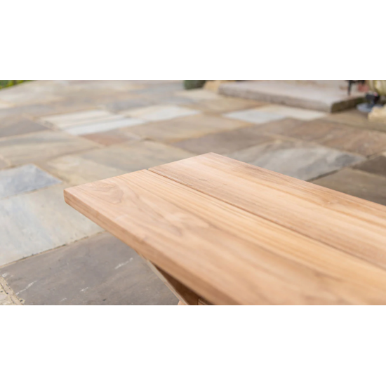 Teak Plank Bench 1.2 m — прочная скамья из натурального текового дерева, подходит как для сада, так и для помещений. В комплект входит 1× Teak Plank Bench 1.2 m. Размеры: ширина 400 мм × высота 440 мм × глубина 1200 мм; вес 11 кг. Скамья обеспечена 10-летней гарантией, что подтверждает её качество и долговечность.