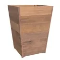 Эти высококачественные кашпо изготовлены из древесины твердых тропических пород. Это гарантирует, что они безвредны для окружающей среды и будут иметь теплый и естественный вид. Мы используем только твердую древесину класса прочности 2. Благодаря высокой прочности древесины не требуется дополнительной обработки. Если сеялки не обрабатывать, они будут постепенно стареть, не влияя на качество саженцев. Они построены с использованием крепежа из нержавеющей стали, внутренняя сторона покрыта EPDM, а нижняя сторона - материалом, препятствующим укоренению.